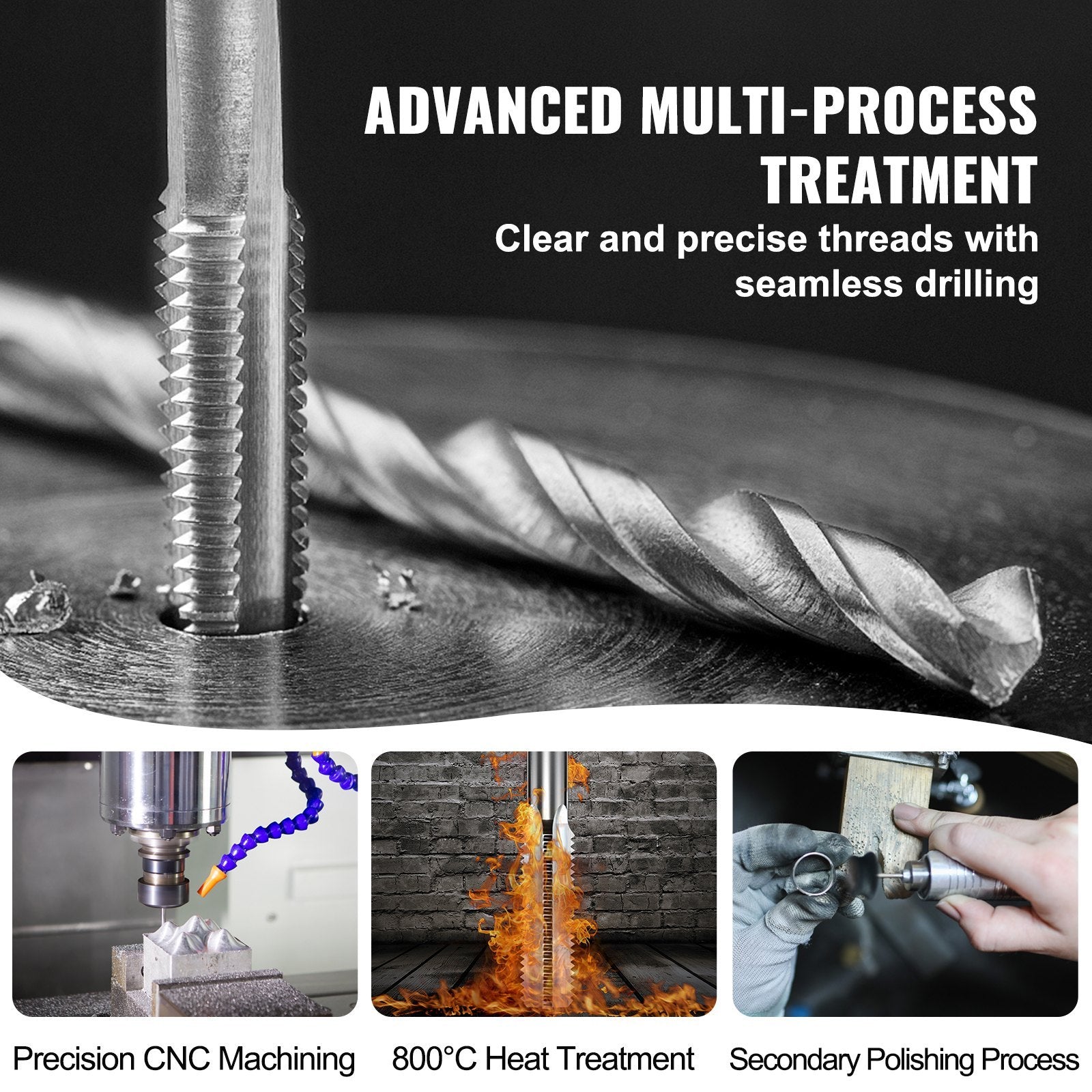 The VEVOR 116-piece tap and die kit is designed for professional thread machining and repair scenarios, with its core advantages being "high-hardness materials + precision machining + versatile configuration." It covers various sizes of taps, dies, and matching tools, adapting to both metric and imperial thread requirements. Suitable for machining, equipment repair, and DIY projects, it easily solves problems such as incomplete thread machining and insufficient precision, providing users with an ultimate thread machining experience.