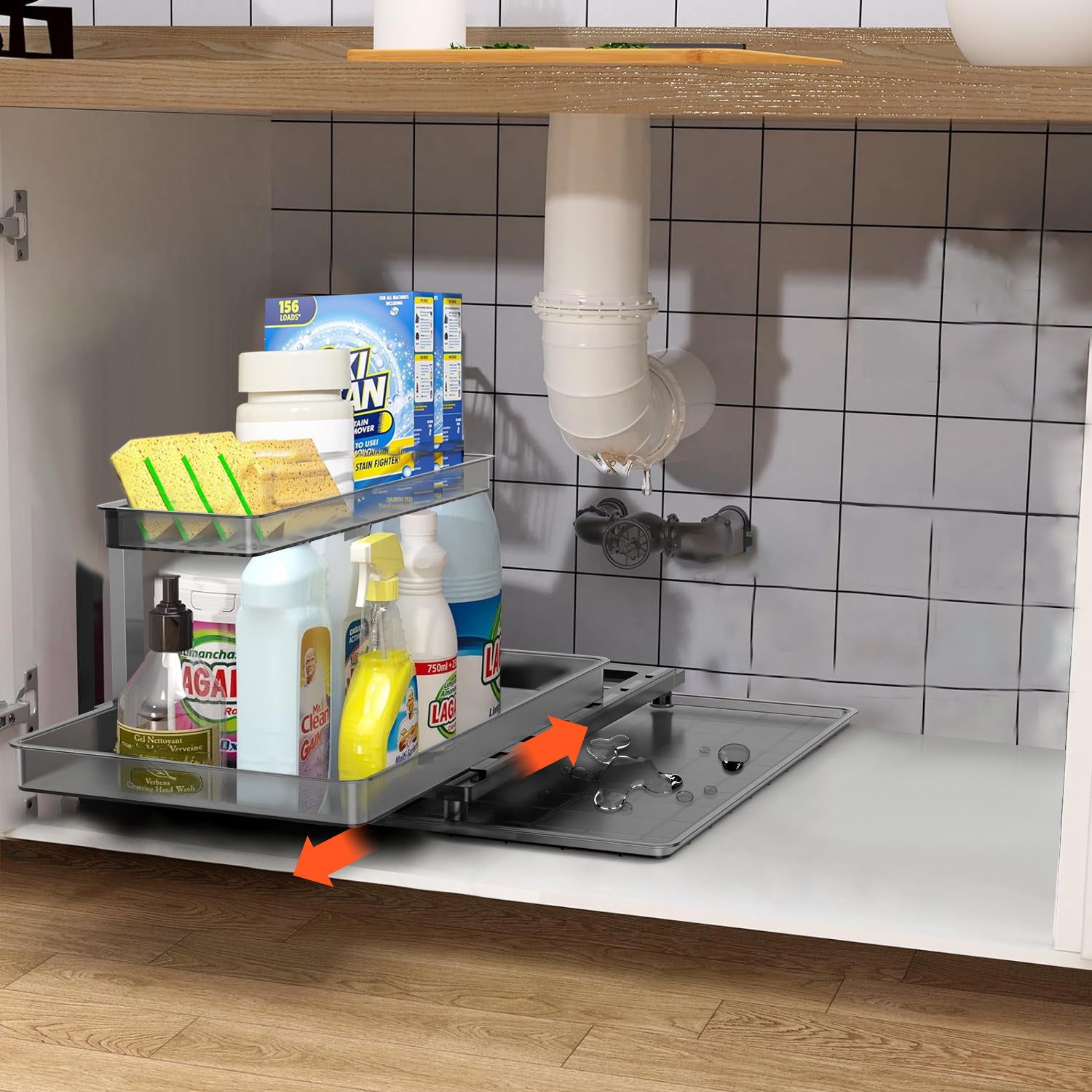 1Pc 2Tier Pull Out Under Sink Organizer Cabinet Organizer With Sliding Drawer Tray L Shaped Slide Out Storage Shelves For Bathroom Kitchen Cabinet