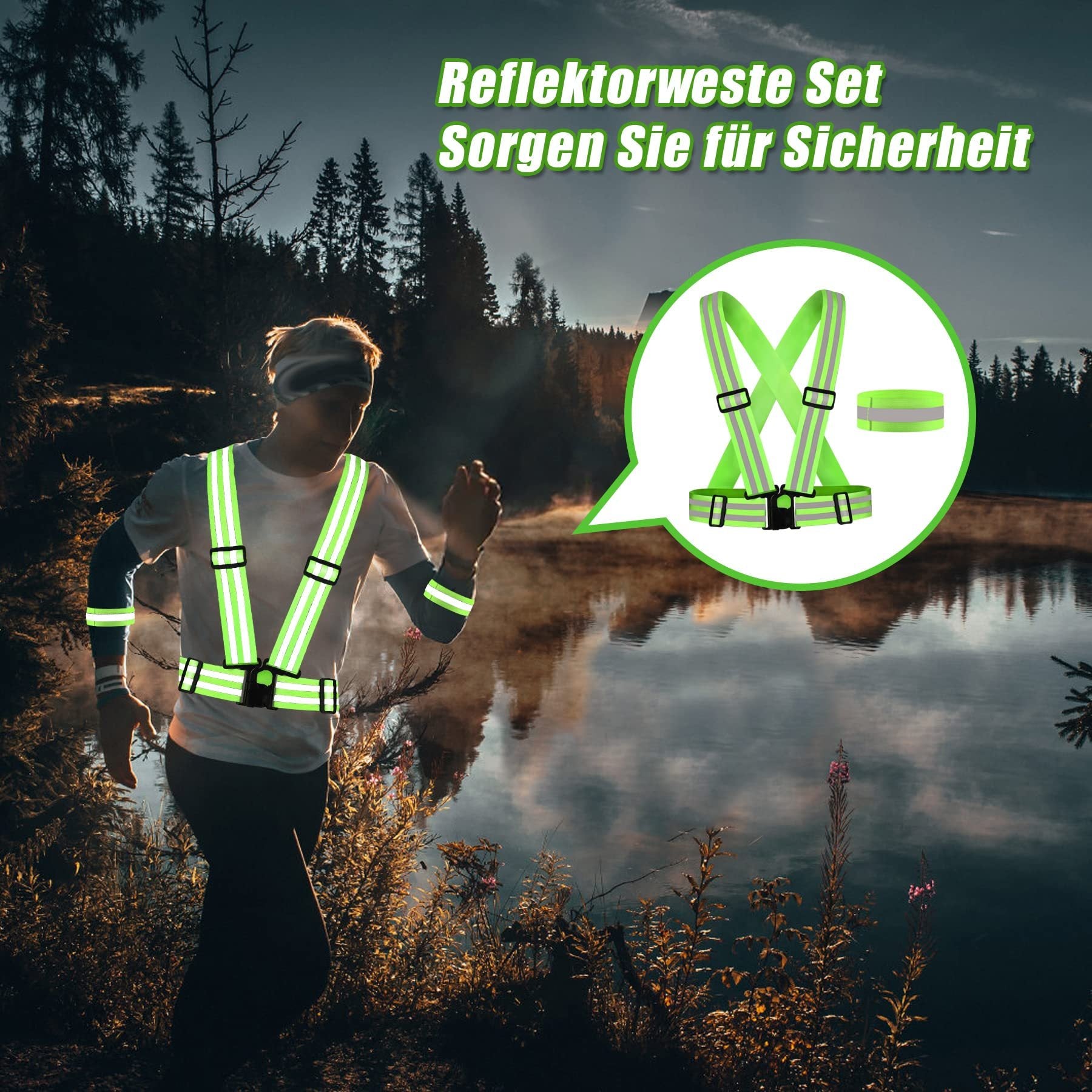 7-in-1 Reflective Vest Set, 2 Adjustable High Visibility Vests, 4 Reflective Wristbands And 1 Yellow Storage Bag For Jogging, Cycling And Hiking In The Dark,