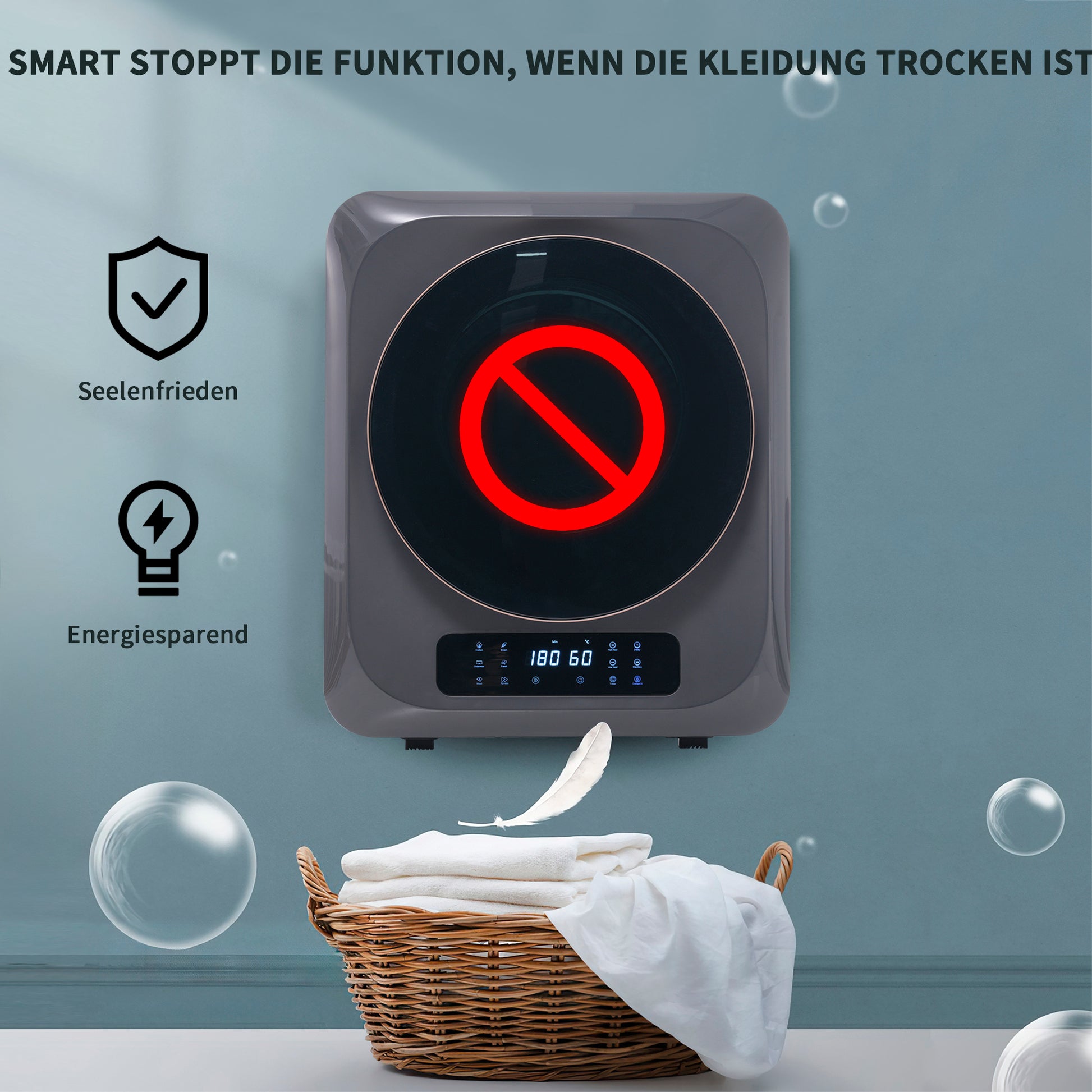- Überhitzungsschutz und Wandmontage: Unsere Trockner verfügen über einen Überhitzungsschutz, sodass Sie sie sicher und sorgenfrei nutzen können. Gleichzeitig können Sie durch das an der Wand montierbare Design mehr Platz zu Hause nutzen und müssen sich nicht mehr bücken, um Kleidung zu platzieren, was das Leben und die Hausarbeit erleichtert.