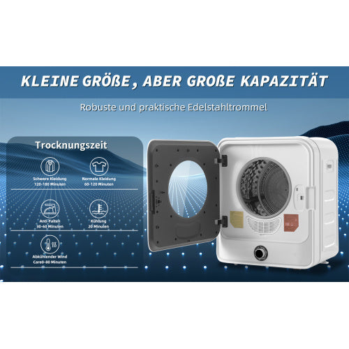 Product Name:Umlufttrockner, Edelstahltrockner, 3 kg, tatsächlich bis zu 4,5 kg, 830 W, Mehrfachfiltration, 5 Programme, Überhitzungsschutz, Wandmontage [Energieklasse C]