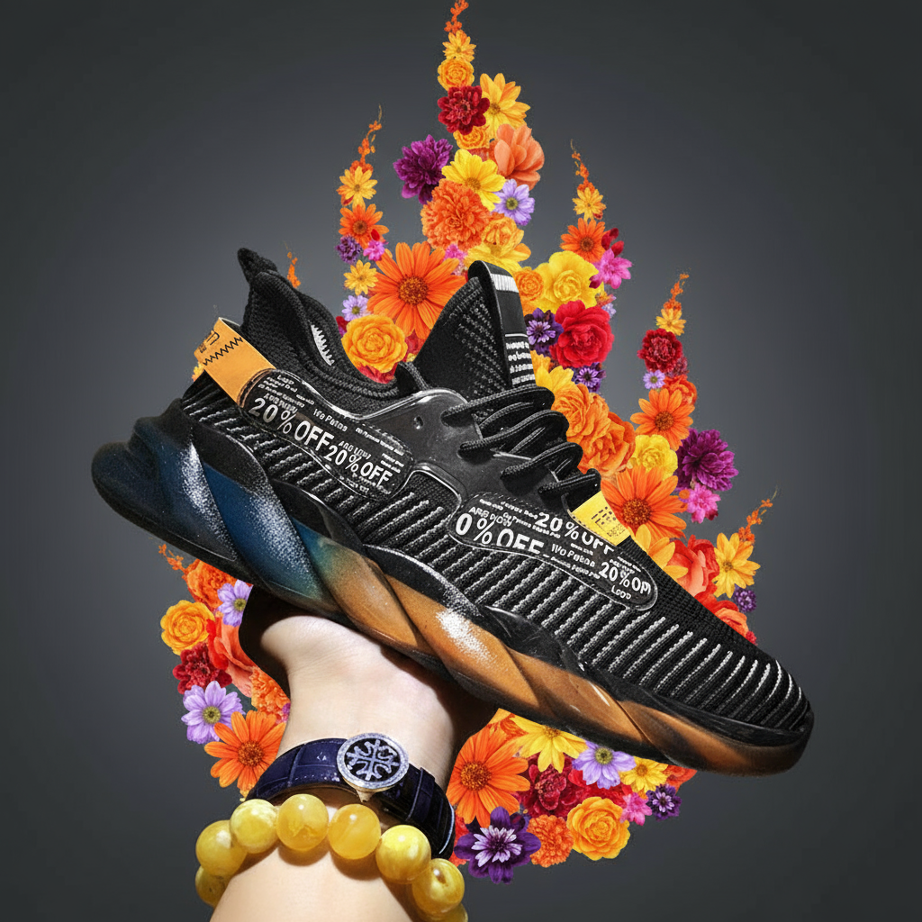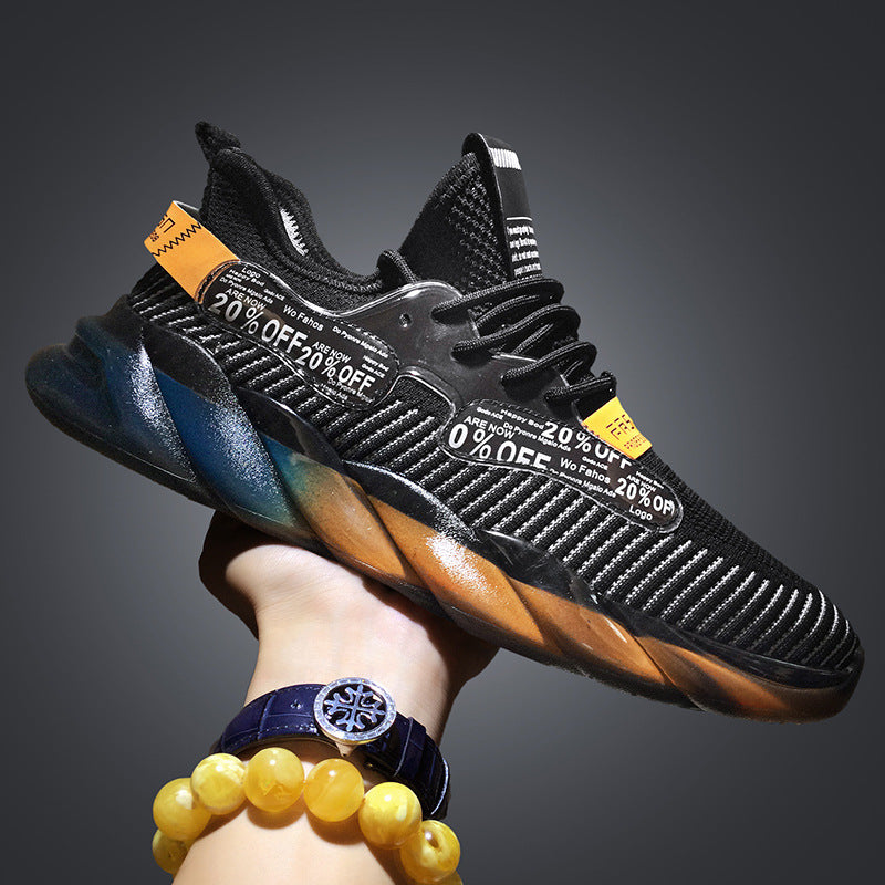 New Transparent Bottom Flying Woven Coconut Men's Shoes Korean Style Trendy Sneakers