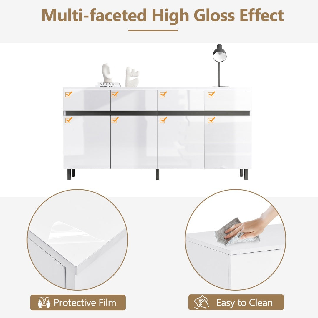 Add a touch of elegance and practicality to your home with this modern white sideboard cabinet. Designed with 4 spacious drawers and 4 doors, it offers versatile storage for your dining room, kitchen, or living space. Adjustable shelves let you organize dishes, linens, or personal items just the way you like. Its clean lines and smooth finish make it a perfect fit for any modern or minimalist décor.